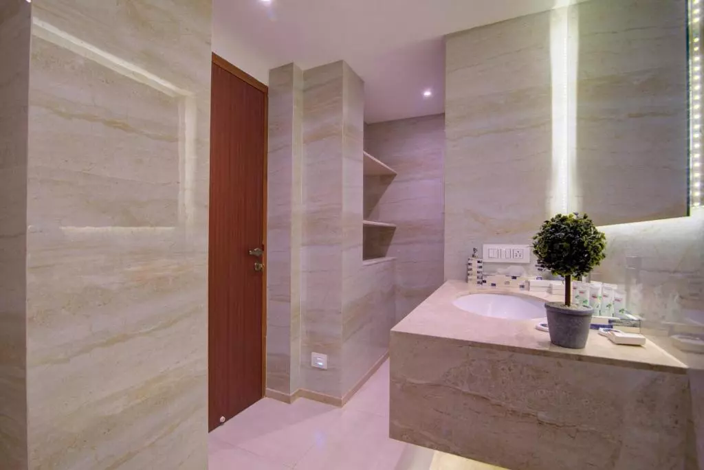 حمامهای بهسبک غربی دارای سشوار، وان، لوازم بهداشتی و آب سرد و گرم هستند. واحدهای منتخب همچنین دارای بالکن مبله مشرف به باغ هستند. اتاق هایی با منظره ساحل نیز در اینجا موجود است.