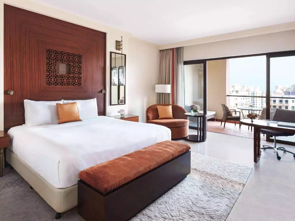 همه ی اتاق های هتل فیرمونت د پالم دارای دکوراسیون مدرن و رنگ های آرام هستند. هر اتاق و سوئیت دارای بالکن خصوصی است و هتل اتاق های متصل به هم را برای گروه های بزرگ ارائه می دهد.